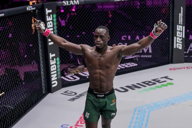 Modibo Diakité vainqueur du combat contre le Néerlandais Samuel Hovsepyan,à l’ARES 29,la ligue française de MMA,à l’Adidas Arena,le 14 février 2025, à Paris. ALEXIS GOUDEAU/ICON SPORT De l’ambiance électrique de l’Adidas Arena à Paris,des supporteurs qui hurlaient son nom,des commandements de l’arbitre,Modibo Diakité n’a entendu qu’un vague bourdonnement,vendredi 14 février,quand,après trois rounds au centre de la salle polyvalente,il a battu son adversaire par décision unanime lors de son premier combat professionnel.