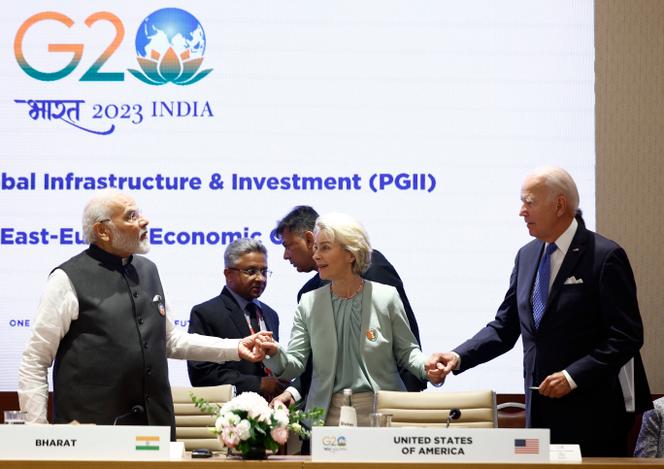 La présidente de la Commission européenne,Ursula von der Leyen,avec le président américain,Joe Biden,et le premier ministre indien,Narendra Modi,lors d’une session sur le « Partenariat pour l’infrastructure et l’investissement mondiaux »,dans le cadre du sommet du G20 à New Delhi,le 9 septembre 2023. EVELYN HOCKSTEIN/AFP Le corridor économique Inde-Moyen-Orient-Europe (IMEC),voulu par Joe Biden,va-t-il bénéficier du cessez-le-feu à Gaza et de l’arrivée de Donald Trump ? Officialisé en septembre 2023,en marge du sommet du G20 à New Delhi,à l’initiative de la Maison Blanche,ce projet multimodal vise à connecter les ports de l’Inde,du Moyen-Orient et de l’Europe,le long de l’ancienne « route des épices »,et à faciliter les échanges de marchandises,d’énergie,de données numériques sécurisées par des câbles de fibre optique et des pipelines.