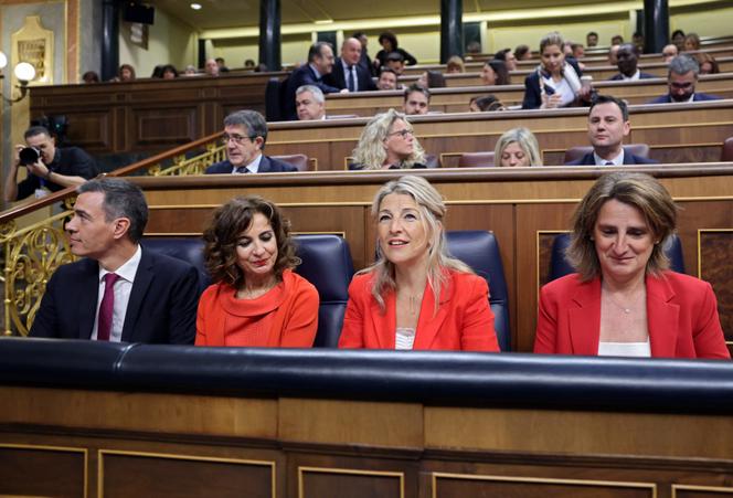 De gauche à droite : le premier ministre espagnol,Pedro Sanchez,la ministre des finances,Maria Jesus Montero,la ministre du travail et de l’économie,Yolanda Diaz,et la ministre de la transition écologique et du défi démographique,Teresa Ribera. Au Congrès des députés,à Madrid,le 10 avril 2024. THOMAS COEX / AFP Face à la crise de la démocratie : plus de démocratie. Tel a été le mot d’ordre lancé jeudi 20 février par la ministre espagnole du travail,à l’occasion de la présentation du comité d’experts,qu’elle a chargé d’élaborer un rapport et des propositions législatives afin d’encourager la démocratie dans les entreprises. Face au « gouvernement des hyperriches »,à « l’oligarchie technologique » et aux « corporations autocratiques » – autant de références à l’élection de Donald Trump,au pouvoir d’Elon Musk et plus généralement à la dérive du capitalisme financier aux Etats-Unis –,la cheffe du parti de la gauche radicale Sumar,qui gouverne le pays en coalition avec les socialistes,a défendu « la démocratisation des entreprises et de l’économie » et « un modèle de prospérité partagée » avec les salariés,visant aussi à réduire les inégalités. « La démocratie économique est une tâche morale et politique urgente dans un contexte global d’érosion de nos systèmes démocratiques,a-t-elle insisté. Sans démocratie dans le travail,la démocratie est incomplète. »