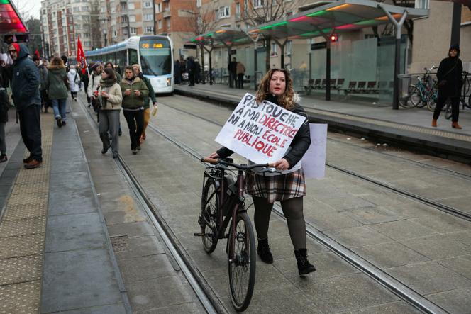 Une manifestation contre la fin du régime dérogatoire des décharges pour les directeurs d’école,devant le rectorat de Paris,le 11 février 2025. THOMAS SAMSON / AFP A l’arrêt de tramway de la Butte du Chapeau-Rouge,le quai en bloc de béton gris n’est plus accessible : des centaines de personnes affluent et se positionnent devant le rectorat de Paris,dans le 19ᵉ arrondissement,ce mardi 11 février. Professeurs des écoles,directeurs,parents d’élèves et leurs enfants,tous sont venus en réponse à l’appel à la grève des principaux syndicats du premier degré (FSU-SNUipp,FO,SUD,CGT). L’objet de la grève : le mécontentement de la communauté éducative après l’annonce du rectorat de la fermeture de classes sur l’académie de Paris,la perte de 110 postes de professeurs et la remise en cause de la décharge dérogatoire des directeurs d’école dans le premier degré,après une recommandation de la Cour des comptes. Il qualifiait l’exception parisienne d’une « rupture d’égalité vis-à-vis des autres communes qui n’en bénéficient pas » dans une note adressée au ministère de l’éducation,en septembre 2024.