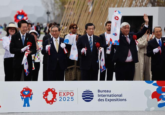 De gauche à droite : le ministre de l’économie,Yoji Muto,le président de l’Association japonaise pour l’exposition universelle de 2025,Masakazu Tokura,le ministre chargé de l’exposition internationale,Yoshitaka Ito,et le ministre de la défense,Gen Nakatani,lors de l’ouverture de l’Expo 2025,à Osaka,dans l’ouest du Japon,le 13 avril 2025. ISSEI KATO / REUTERS Dotonbori sature en ce début avril. L’ancien quartier des théâtres et des plaisirs d’Osaka déborde de visiteurs étrangers venus photographier l’enseigne Glico,célèbre pour son homme qui court,et profiter des berges d’un canal encombrées d’estaminets aux enseignes multicolores proposant les spécialités locales,takoyaki (beignets de poulpe) ou okonomiyaki (sorte de galettes de chou et de fruits de mer). Le château de la ville et son parc aux cerisiers en fleur ne sont pas moins fréquentés,comme la tour Tsutenkaku et ses ruelles environnantes,qui fleurent toujours les années 1950.