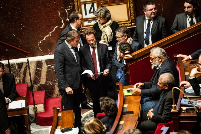 Le président du groupe socialiste,Boris Vallaud,entouré des députés socialistes Jérôme Guedj et Olivier Faure,lors de la déclaration de politique générale du premier ministre à l’Assemblée nationale,à Paris,le 14 janvier 2025. JULIEN MUGUET POUR « LE MONDE » Le gouvernement espère avoir lâché suffisamment de lest. Lundi 3 février,le projet de loi de financement de la Sécurité sociale (PLFSS) pour 2025 devait être,à nouveau,débattu en séance à l’Assemblée nationale. Pour qu’il soit adopté,le premier ministre,François Bayrou,a annoncé,samedi dans la soirée,qu’il se prévaudra de l’article 49.3 de la Constitution,qui permet de faire passer un texte sans vote. Le pouvoir en place a remanié la copie afin d’obtenir la bienveillance des députés socialistes et d’éviter ainsi la censure.