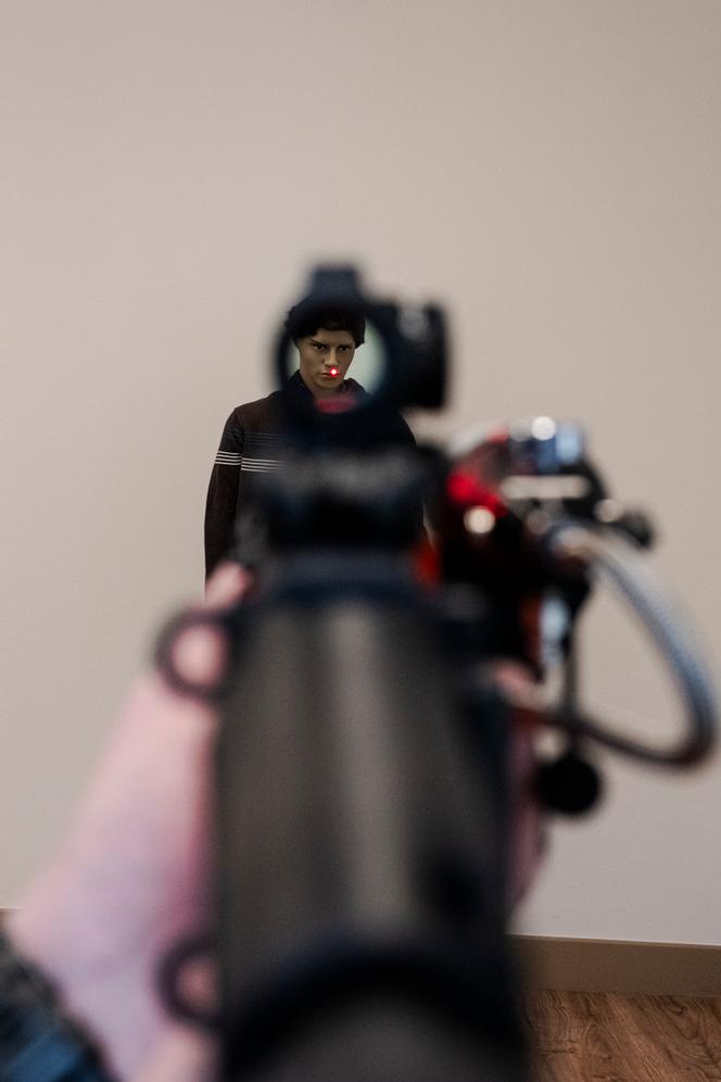 Démonstration du Smart ProtectoR - 303T,à Herstal,Belgique,le 7 mars 2024. SEBASTIEN VAN MALLEGHEM POUR « LE MONDE » Des lignes futuristes,une livrée orange et un nom élaboré avec un sens consommé du marketing : le Smart ProtectoR 303-T ferait presque penser à un jouet tirant des balles en mousse,un produit dérivé d’une saga de science-fiction à la mode. Mais,avec ce lanceur de billes élaboré pour les forces de l’ordre,le géant belge de l’armement FN Browning Group (ex-FN Herstal) espère conquérir le marché de la sécurité intérieure,avec un argument de poids : une visée assistée par intelligence artificielle (IA),« première étape d’une digitalisation en marche »,selon Henry de Harenne,directeur de la communication et membre du comité exécutif de « la FN ».