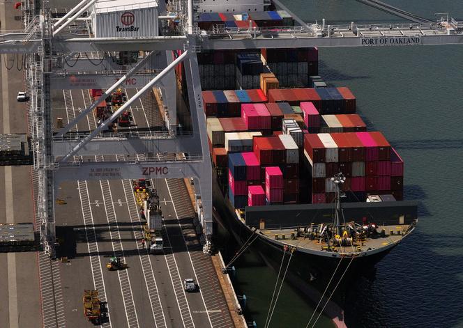 Des containers sur un bateau dans le port d’Oakland,le 28 avril 2025. JUSTIN SULLIVAN / GETTY IMAGES VIA AFP Une défaite significative pour Donald Trump,mais certainement pas la fin de la guerre commerciale. De Bruxelles à Pékin,en passant par les marchés financiers,les réactions au camouflet judiciaire subi par le président américain sur les droits de douane ont été extrêmement prudentes.